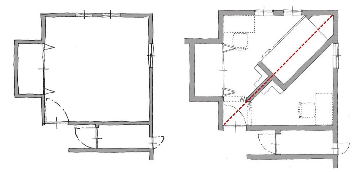 斜著分隔最大的優勢就是更省空間,適合小面積的兒童房,兒童房分隔開日常是沒有辦法隨意進行移動的,每個房間裡的活動空間有限。另外隔開後房間可能會出現很多拐角,想要利用比較難,著實是有些浪費了。
