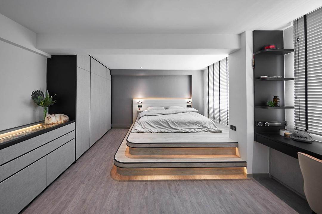 也有很多大宅現在越來越喜歡定制地台床,也能很好地減少衛生死角。內嵌燈帶還能為生活帶來更多的氛圍。