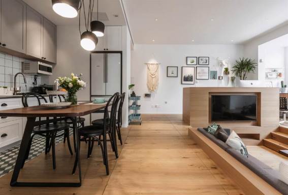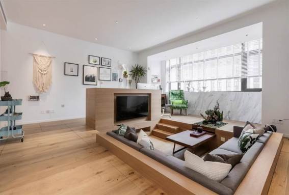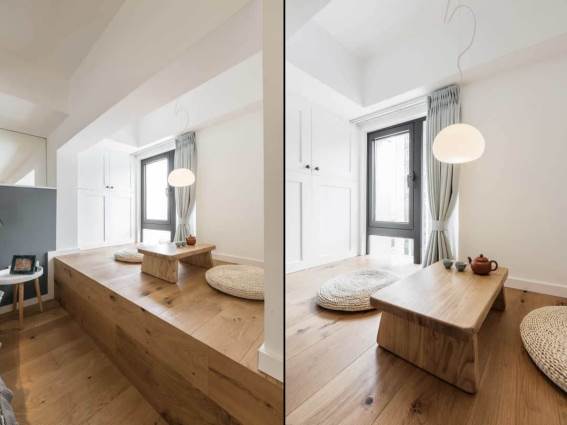 這時老婆提出建議「客廳地面抬高50厘米,就全解決了!」,開始我將信將疑,沒想到裝完效果出奇得好,不僅房間看起來更開闊,儲物空間也超大,連沙發都省了!