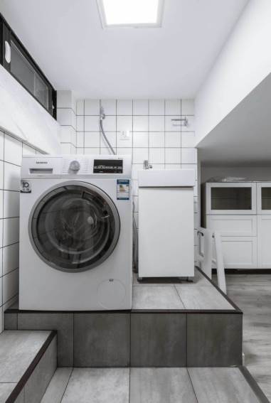 收納間的內側是「洗衣房」,為避免洗衣時太辛苦,這里沒有吊頂,1.95米的高度,站立、走動都不會受影響。