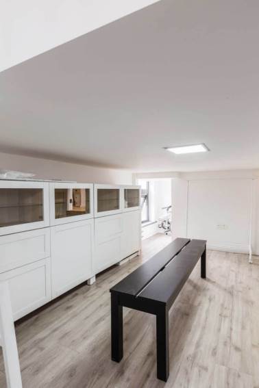 書架的后面是一間14平米的儲物間,雖然高度只1.5米,但畢竟是收納雜物的房間,所以還是可以接受的。