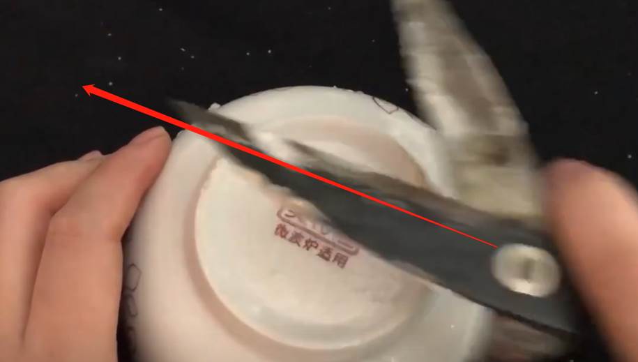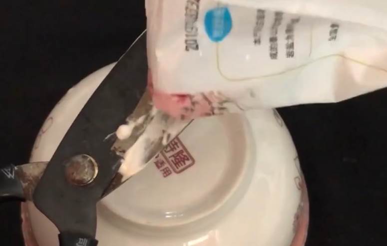 接著拿出我們浸泡好的剪刀,在剪刀上面涂抹一些牙膏。兩邊都涂抹一些,涂抹均勻之后,我們在上面再撒一些食鹽,也是兩邊均勻的撒上食鹽,涂抹均勻之后,我們再碗底進行摩擦,記住一定要順著一個方向摩擦,不然的話會損害剪刀的刀刃。