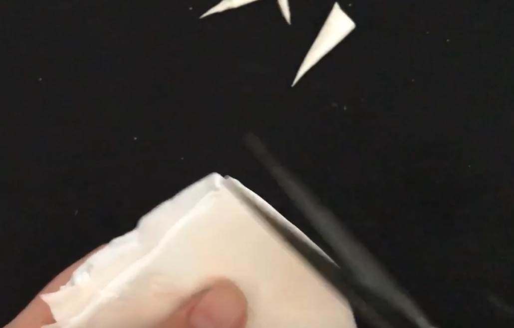 接下來我們將上面的鹽還有牙膏擦干凈,看一下效果。大家看一下我們的剪刀造比剛開始已經變得很鋒利了,而且也比較光亮。我們剪一下東西,看一下效果,大家可以看到剪刀已經變得非常鋒利了,剪出來的邊緣也沒有毛刺。